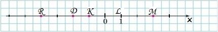 Укажи координати точок K, D, R, M , зображених на малюнку.